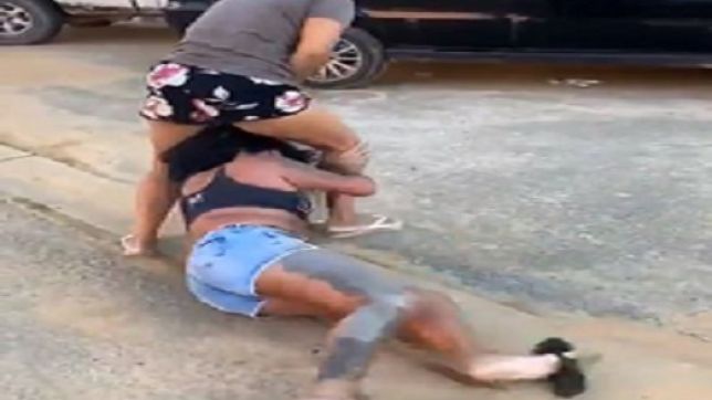 Populares que assistiram a baixaria em plena via pública filmaram uma esposa completamente irada aplicando muita tapa, soco e puxão de cabelo na amante de seu marido.