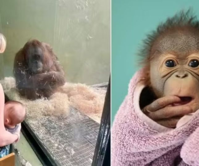 Mulheres tentam ensinar mamãe orangotango a amamentar em zoo