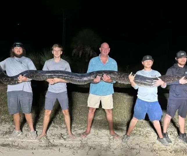 Cinco caçadores lutam para dominar píton de 5,2 metros na Flórida