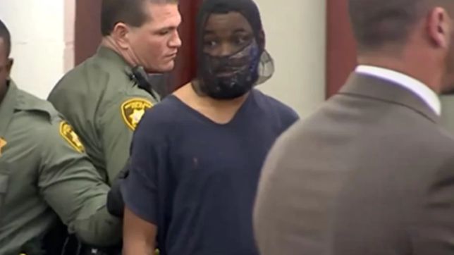 O homem que viralizou após atacar uma juíza em Las Vegas, no estado norte-americano de Nevada, compareceu a uma audiência com uma espécie de focinheira, algemado e usando luvas.