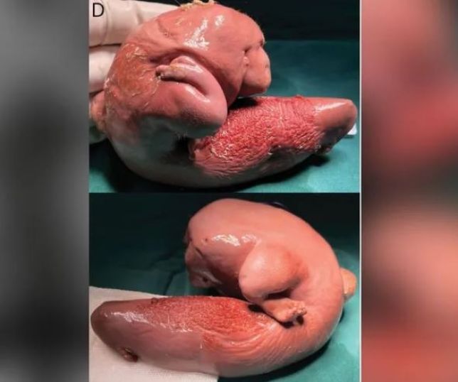 Durante a realização de alguns exames, a equipe médica constatou que um feto morto de 28 semanas estava alojado na parte superior do abdômen da paciente e isso estava pressionando o seu intestino.