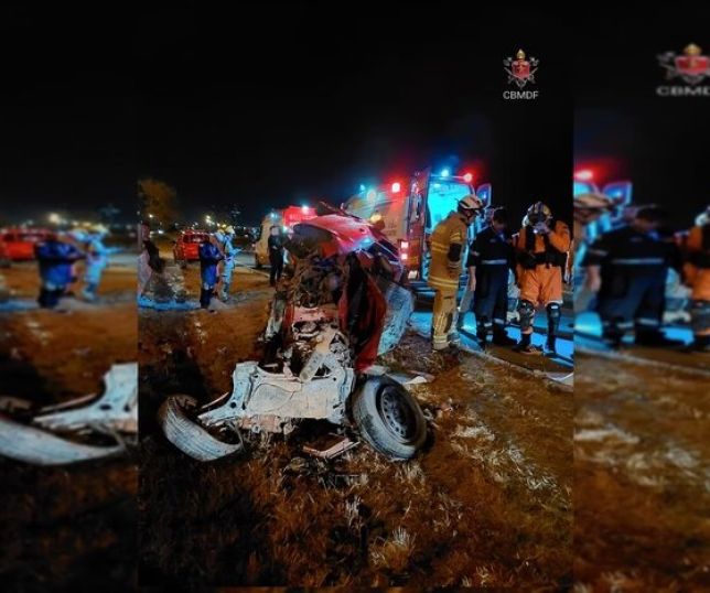 Motorista morre após capotar carro na BR-070. Veículo ficou destruído
