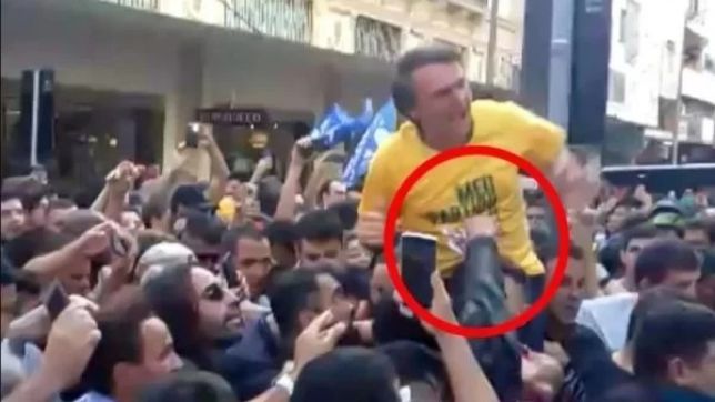 Então deputado federal, Jair Bolsonaro sofreu um atentado durante um comício em Juiz de Fora (MG). Ele foi atingido por Adélio no abdômen, enquanto era carregado no meio de uma multidão de apoiadores. A gravidade do ferimento foi grande e houve muita perda de sangue.