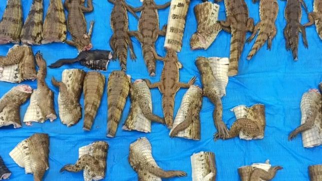 Os jacarés eram das espécies Jacaretinga e Jacaré-Açu. Os animais foram achados cortados em várias partes dentro do barco. Além deles, também foi apreendida uma espingarda calibre 16 e munições.