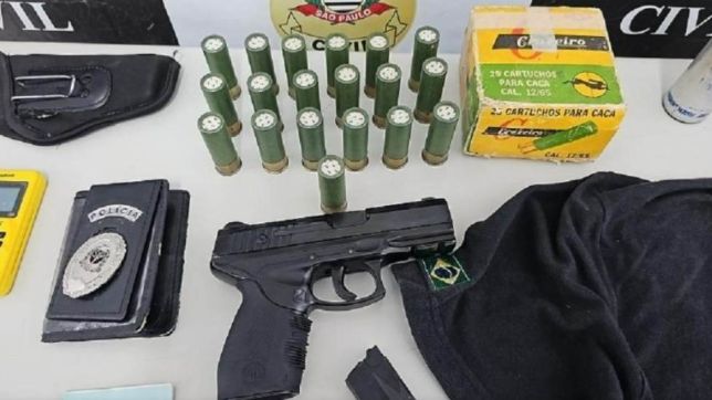A Secretaria de Segurança Pública de São Paulo (SSP-SP) informou por meio de nota enviada à IstoÉ que os policiais também encontraram na casa 19 munições calibre 12, uma granada de gás lacrimogêneo de uso exclusivo das forças policiais, uma algema, celular, computador, documentos, uma camiseta da instituição e um distintivo;