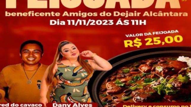 O bilhete da feijoada está custando R$25,00 reais, no dia terá duas atrações músicas com Fred do Cavaco com os melhores pagode e Dany Alves com as melhores do bolero.