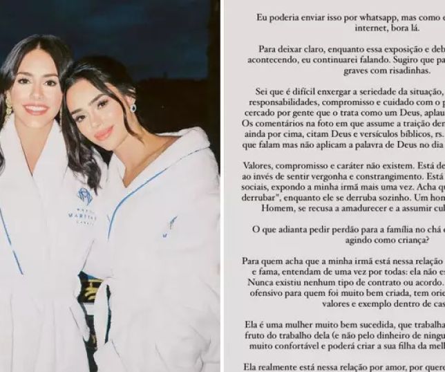 Irmã de Bruna Biancardi defende irmã e critica Neymar: 'Se recusa a amadurecer'