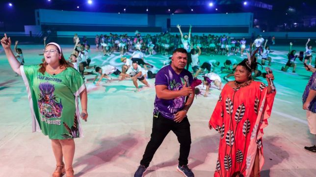 Na arena do Cirandódromo, coreografias e movimentos sincronizados. Itens coletivos, como o cordão de entrada e de cirandeiros, sustentaram as duas horas de apresentação em uma prévia do que será levado para apresentação oficial, marcada para o dia 1º de setembro.