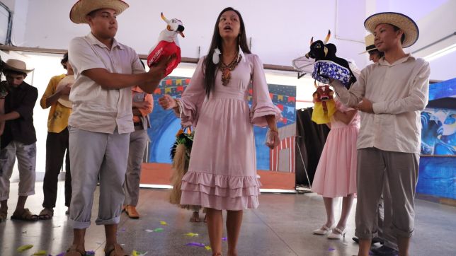 Este ano, uma novidade levou a história teatralizada da origem dos bois-bumbás de Parintins com o espetáculo Parintins Folclore em Festa. “Foi uma proposta do secretário Marcos Apolo, de nós trabalharmos junto com a visita mediada do Centro Cultural de Parintins, uma proposta de pesquisa que contasse aos visitantes um pouco do início dos bumbás, contando um pouco da cidade, do folclore”, conta Thiago Oliveira, autor e diretor da peça.