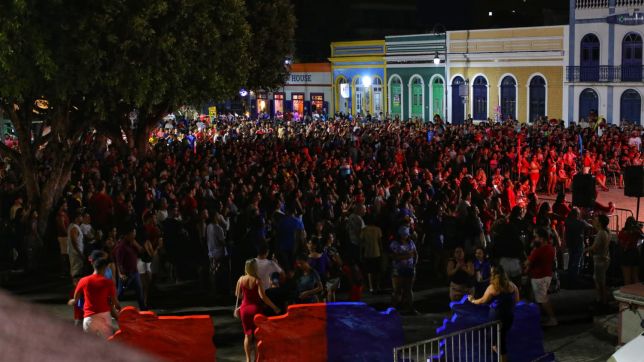 No encerramento do 57º Festival de Parintins, promovido pelo Governo do Amazonas, por meio da Secretaria de Estado de Cultura e Economia Criativa, torcedores do Caprichoso e Garantido reuniram-se, domingo (30/06), no Largo São Sebastião, para acompanhar a transmissão da última noite das apresentações dos dois bois-bumbás.