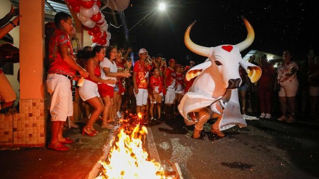 Após o término da Ladainha, o Boi Garantido saiu com a batucada pelas ruas da Baixa do São José, em agradecimento pela graça concedida há muitos anos. Em cada casa com a fogueira acesa, o bumbá vermelho e branco entrava para visitar.Na casa da família Azevedo, um bolo de aniversário foi preparado para o Boi Garantido. Balões vermelhos, música e a fogueira na frente da casa indicavam que ali era um reduto perreché.