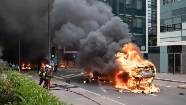 Em Nanterre, cidade operária nos subúrbios ao oeste de Paris onde Nahel M., de 17 anos, foi morto a tiros na terça-feira, manifestantes atearam fogo em carros, bloquearam ruas e atiraram projéteis contra a polícia após uma vigília pacífica.