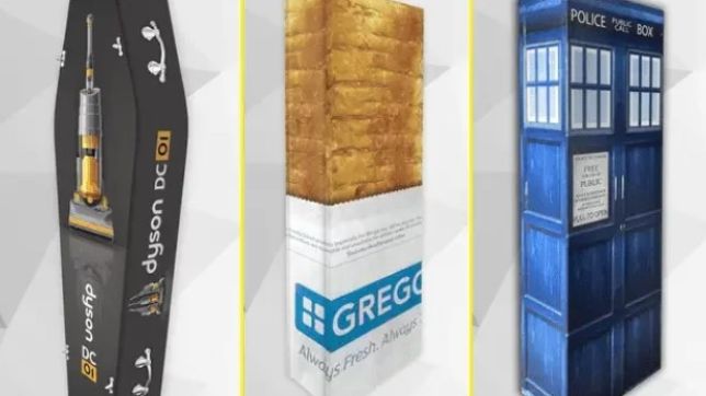 Com o intuito de “quebrar o tabu” que envolve a morte e o sepultamento, uma empresa funerária do Reino Unido decidiu oferecer aos clientes caixões personalizados, que incluem estampas nada comuns, como de uma embalagem de aspirador e o famoso telefone público da série britânica de TV Doctor Who.