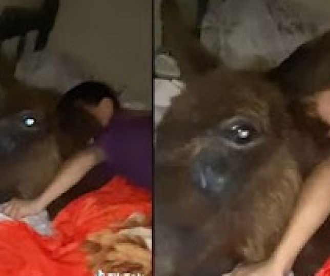 Jumento dorme ao lado de mini tutor em cama e choca internautas