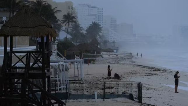 A tempestade chegou à península mexicana de Yucatán durante a manhã. A região abriga a cidade de Cancún, que é famosa entre os turistas.