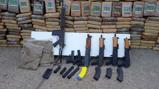 Um quinto fuzil é de fabricação nacional, mas trazia um brasão da Venezuela, indicando ter sido possivelmente desviado de alguma força de segurança daquele país. Já as pistolas apreendidas foram produzidas na Áustria, também na Europa.