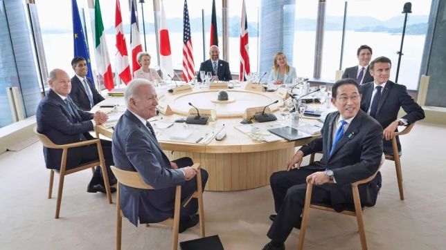 Nesta manhã, os líderes dos Estados Unidos, Joe Biden, da Alemanha, Olaf Scholz, do Reino Unido, Rishi Sunak, da Itália, Giorgia Meloni, do Canadá, Justin Trudeau, e da França, Emmanuel Macron, e do Japão, Fumio Kishida, fizeram a primeira reunião do grupo.
