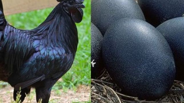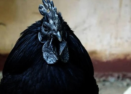 A cor dessas galinhas não se restringe apenas às suas penas. Além da aparência completamente preta, os ossos e até os órgãos se encontram na mesma coloração. A única parte que não tem esta cor são os ovos.