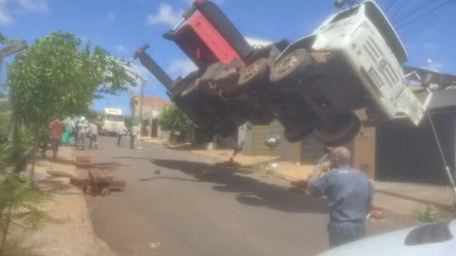 O caminhão guindaste operava do um lado da quadra, quando tombou para o outro "provocando o colapso do guindaste sobre as casas das ruas L1 e L2", no Bairro Lindolfina. Uma das casas teve a parte superior afetada, causando o vazamento da caixa d'água sobre a laje, danificando móveis, eletrodomésticos, roupas e documentos.