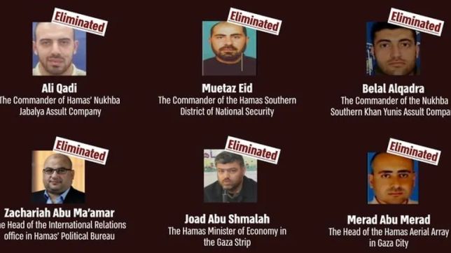 Antes mesmo de qualquer operação por terra contra Gaza, os ataques aéreos de Israel contra o Hamas eliminaram nove integrantes da cadeia de comando de grupos armados palestinos, aponta o cruzamento das informações divulgadas pelas Forças Armadas de israelenses e por fontes ligadas ao grupo terrorista. A contagem aumentou nesta quinta-feira, com a confirmação, por fontes dos dois lados da fronteira, das mortes de Rafat Harev Hossein Abu Halal e Jehad Mheisen, em bombardeios lançados nas últimas 24 horas.