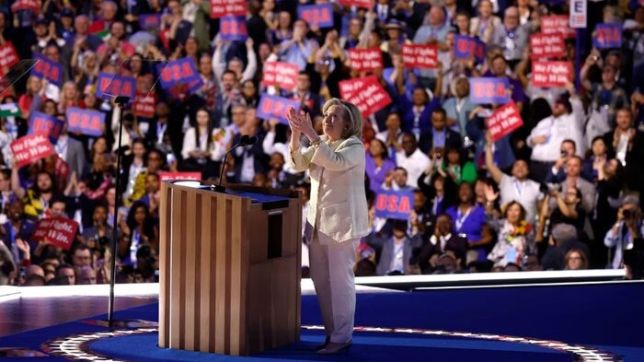 “Estamos tão perto de romper de uma vez por todas o outro lado daquele teto de vidro. Este é o nosso tempo, América. É quando nos levantamos, é quando rompemos”, ressaltou.