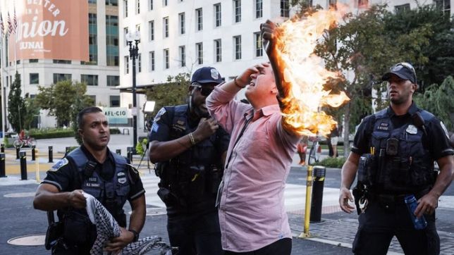Um homem ateou fogo no próprio corpo durante um prostesto pró-Palestina e crítico a Israel, interrompendo, momentaneamente, a manifestação que marcava um ano do ataque do grupo Hamas contra Israel. O protesto tinha quase mil pessoas e ocorreu em Washington DC, Estados Unidos. As informações são do Washington Post.