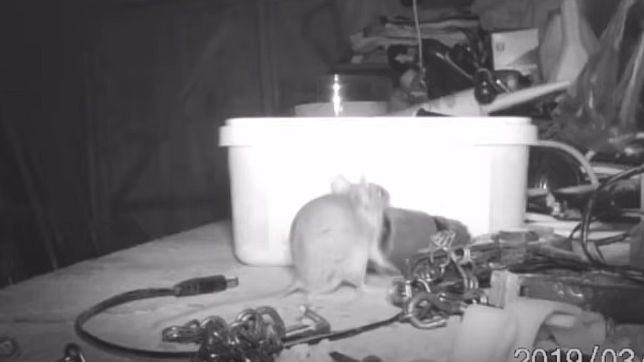 McKears e o vizinho ficaram desconcertados quando as imagens da câmera mostraram que um rato guardava item por item dentro do recipiente. O roedor tentava movimentar até objetos com o dobro de seu tamanho.