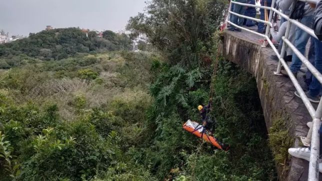 Um homem caiu de aproximadamente 20 metros de altura de um mirante no Morro da Cruz, localizado na região central da cidade de Florianópolis (SC). Na ocasião, ele estava pendurado no parapeito para tirar uma foto quando despencou para trás.