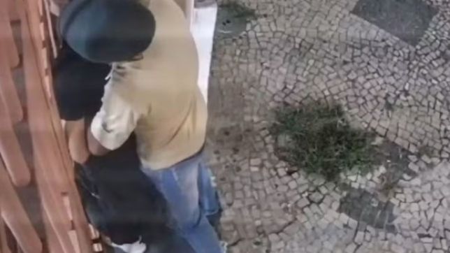 Imagens de câmera de segurança flagraram o momento em que suspeito agarra homem de 31 anos por trás e começa a apalpar sua região genital