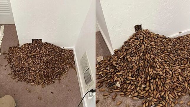 “Eles continuaram vindo e vindo, sem parar”, disse Castro ao The Dodo. “Acreditava-se que as bolotas estivessem a apenas cerca de um quarto da altura da parede. Acontece que eles estavam empilhados até o sótão da casa.