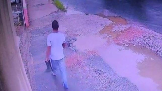Nas imagens, é possível ver que em um momento o homem joga uma sacola na rua.