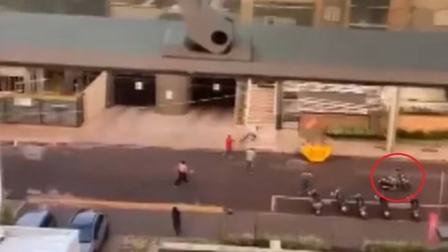 Nas imagens, é possível ver muitas pessoas correndo de um lado para o outro da rua enquanto Arantes sobe em uma moto e sai dirigindo.