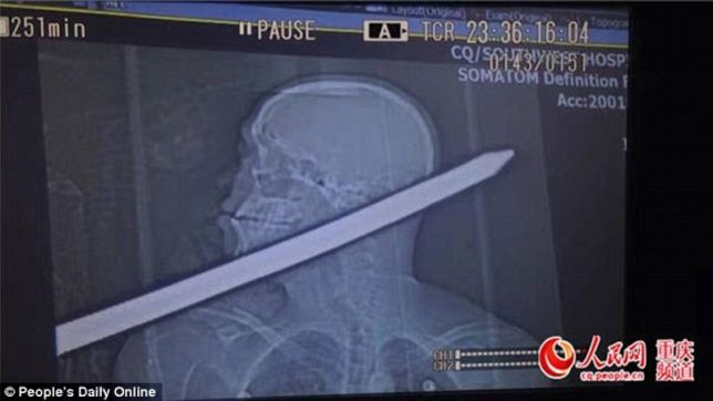 Um construtor chinês sobreviveu, milagrosamente, após uma haste de aço atravessar sua cabeça enquanto trabalhava em uma construção, no município de Chongqing, na China. O homem de 41 anos foi atingido na cabeça por um vergalhão de aço que media 1,5 metro de largura e 3 cm de diâmetro, enquanto tentava mover uma laje de concreto.