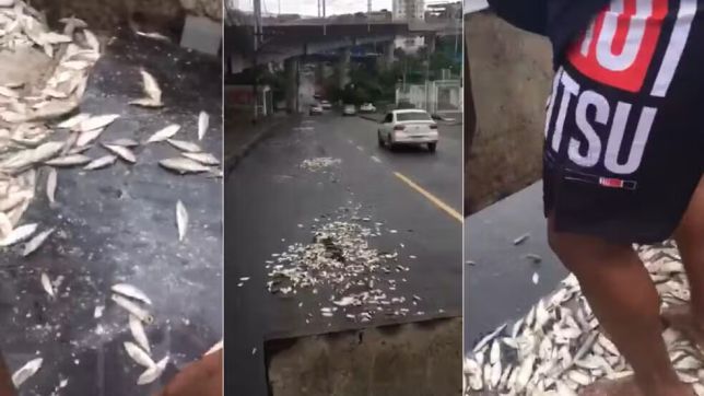 Dois homens em uma caçamba filmaram o momento em que jogaram quilos de sardinhas no entorno da Arena Fonte Nova, em Salvador, na manhã deste domingo (7). De acordo com a Superintendência de Trânsito do Salvador (Transalvador), a ação configura duas infrações de trânsito.