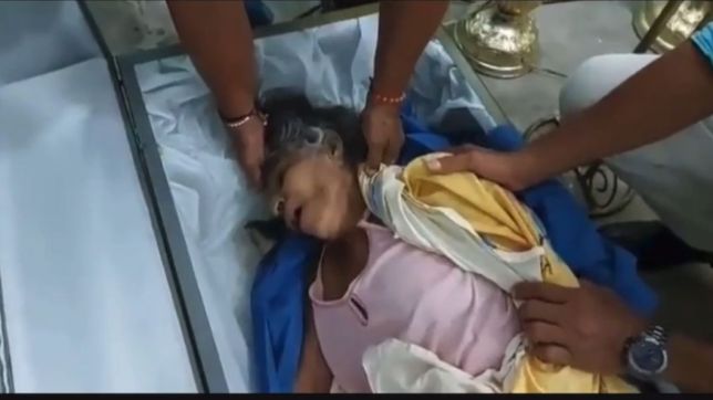 Um vídeo divulgado no Twitter mostra Bella Montoya, 76, no caixão já aberto e respirando com dificuldade, enquanto dois homens a ajudam a sair do local. A idosa bateu no caixão, contou o filho, Gilbert Balberán.