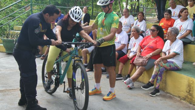 A Prefeitura de Manaus, por meio de parceria firmada entre a Secretaria Municipal de Segurança Pública e Defesa Social (Semseg) e Fundação Manaus Esporte (FME), fez o lançamento, na manhã desta quarta-feira, 8/11, do projeto “Pedalando com a Melhor Idade”, que tem por objetivo ensinar, gratuitamente, pessoas idosas a andar de bicicleta.