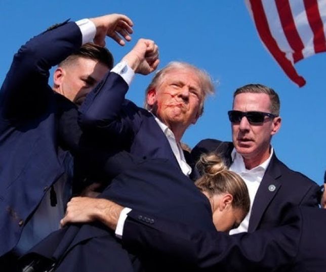 TRUMP É ATINGIDO DE RASPÃO NA CABEÇA E SOBREVIVE ATENTADO NOS EUA. VEJA AS IMAGENS