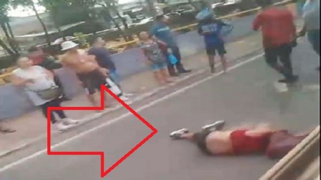 O vídeo gravado por uma das testemunhas do acidente mostra a vítima caída na pista, totalmente inerte, enquanto várias pessoas apenas observam a cena de violência no trânsito.
