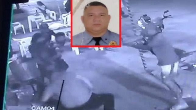 Imagens gravadas pela câmera de segurança do bar mostrar o momento que o cabo PM conversa com um homem e logo em seguida é atacado pelos outros indivíduos.