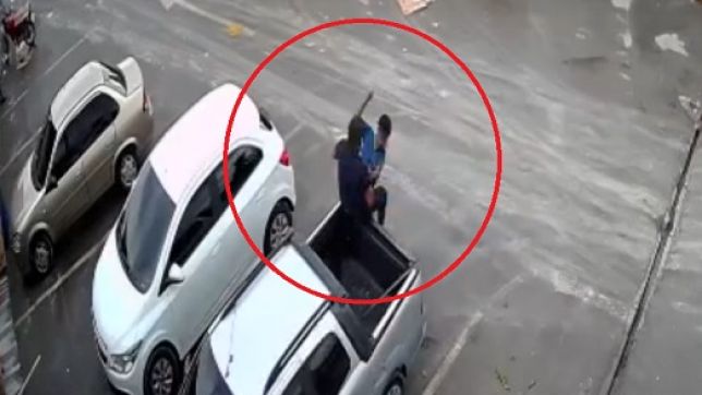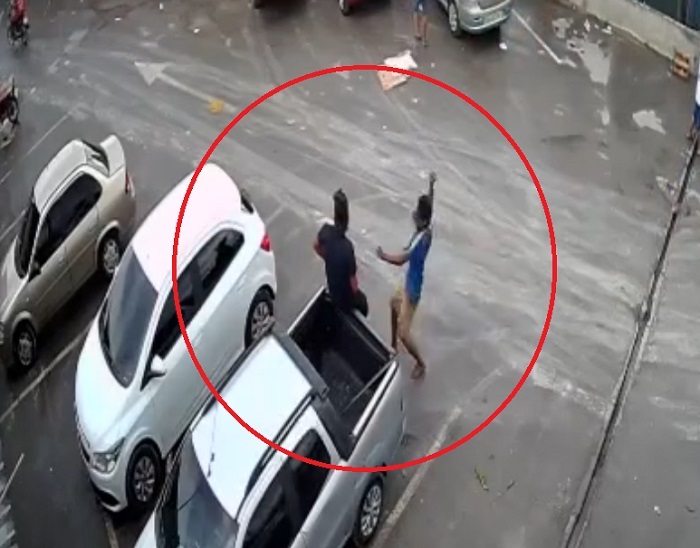 Uma das câmeras de segurança da Feira do Produtor, na Avenida Autaz Mirim, Zona Leste de Manaus, filmou uma tentativa de homicídio, em que um homem é esfaqueado à altura do peito.