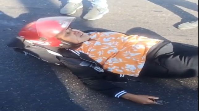 A motociclista caiu e ficou gravemente ferida e com um dos pés dilacerados