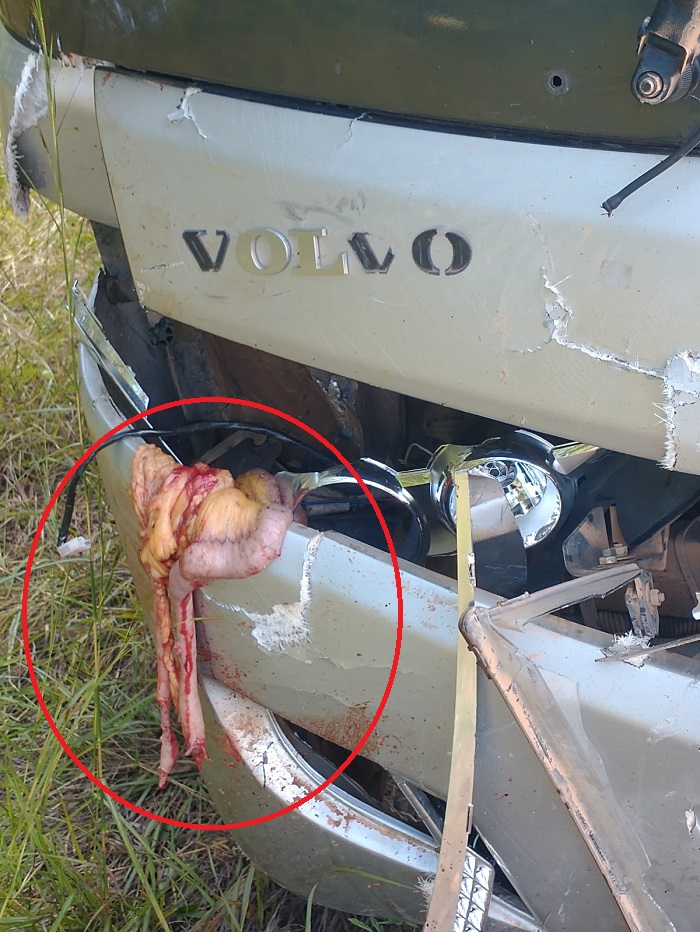 O impacto foi tão violento que uma parte da massa encefálica da cabeça da vítima ficou grudada na lataria dianteira do ônibus que estava vindo de Boa Vista (RR) para Manaus.