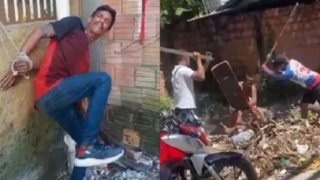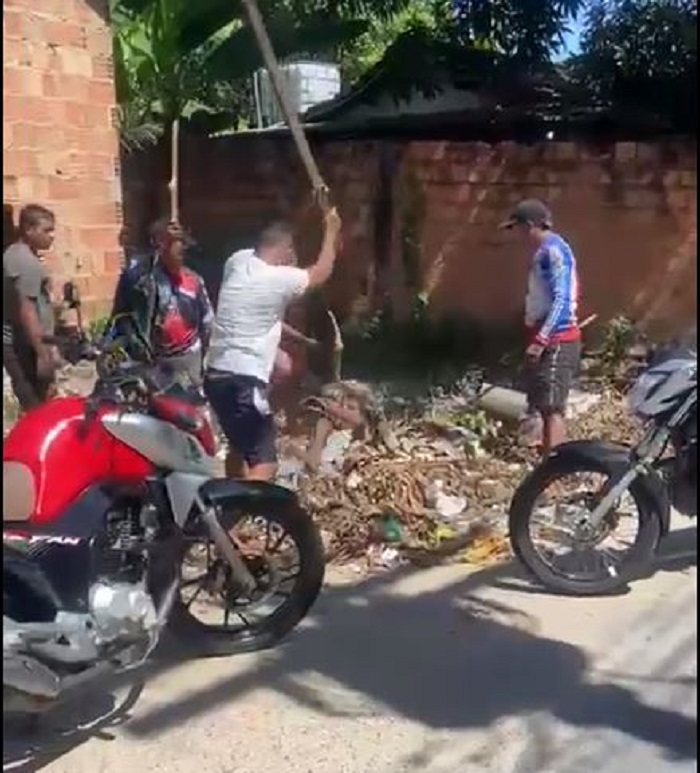 Um ladrão aparece jogado ao chão e sendo atacado com pauladas por um grupo de homens, que as pessoas que postaram esse vídeo, sem se identificar, afirmam que são traficantes e membros do tribunal do crime “cobrando pesado” os ladrões que já haviam sido advertidos, mas não quiseram obedecer a ordem decretada pelas facções.