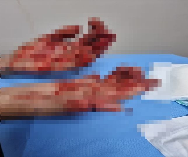 O homem acusado de roubo teve os dedos das duas mãos decepados no ritual de tortura do tribunal do crime