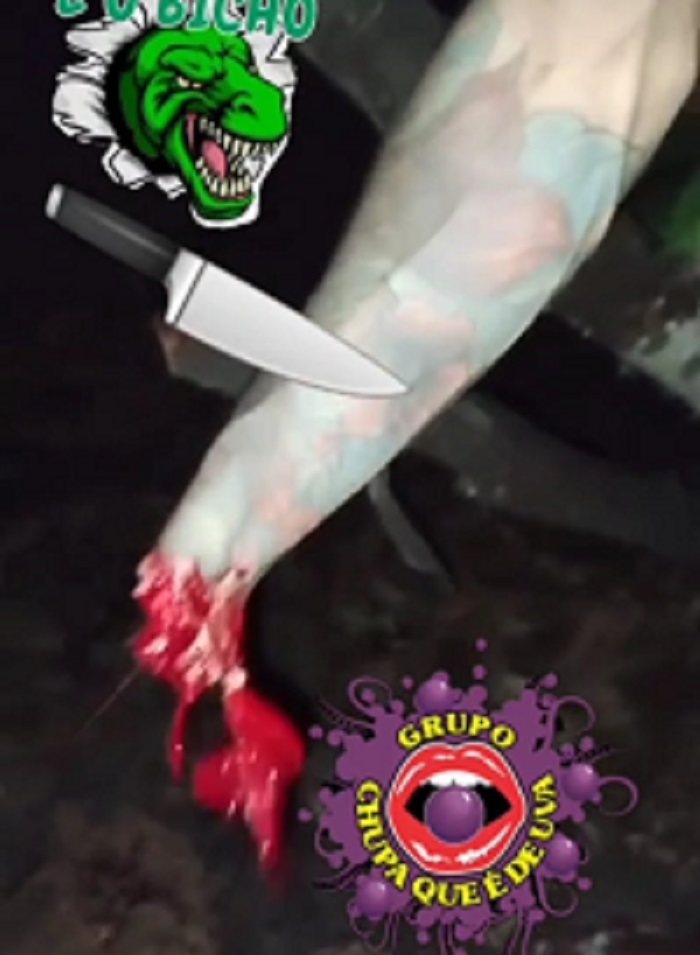 Um membro do tribunal do crime filma, outro decepa a mão e o terceiro, que deve ser o líder, fala “tu vai ficar de exemplo que é pros outros não se teleguiar por ti. Essa porra tem comando, caralho, Aqui é CV, é tudo dois. Tu vai ficar de exemplo pros outros, entendeu”.