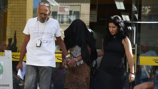Érika de Souza Vieira Nunes, presa ao levar o idoso ao banco, deixou a 34ª DP, em Bangu, na manhã desta quarta-feira