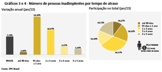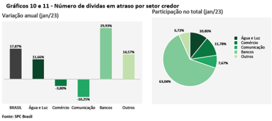 Com o avanço, é possível afirmar que um de cada quatro adultos do país está inadimplente, o que representa aproximadamente 40% dessa população no Brasil. Na média, o inadimplente deve a duas empresas, com destaque para os bancos. O setor financeiro representa 63% dos credores com quem os brasileiros têm contas atrasadas.