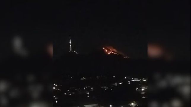 A qualidade não ficou boa,mas é um registro de um grande incêndio no Pico do Jaraguá e pelo que dá para ver, o fogo circunda uma das torres de televisão. pic.twitter.com/CCLTI5NKsv