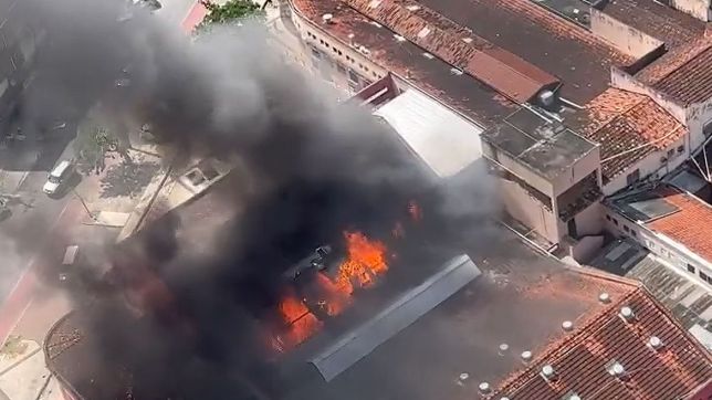 Ainda segundo os bombeiros, parte do teto desabou em decorrência das chamas. Os vídeos que circulam nas redes sociais neste domingo mostram uma intensa chama com densa fumaça saindo de dentro do mercado.