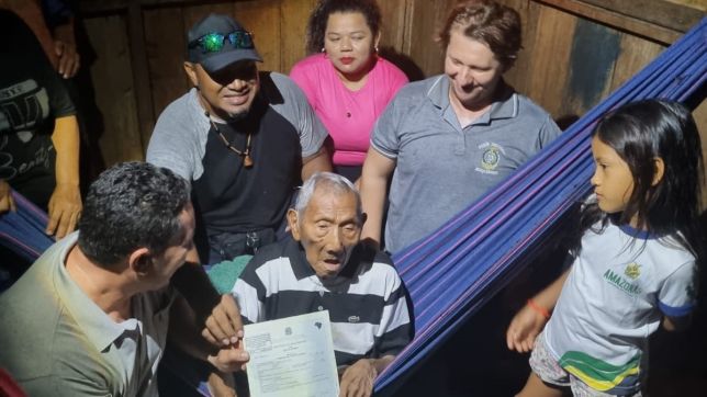 Estava anoitecendo, na última segunda-feira (26/2), quando a equipe da “Justiça Itinerante” do TJAM chegou à casa onde Arnaldo Moreira vive com familiares, na aldeia Laranjal, terra indígena munduruku, em Borba, para fazer a entrega do primeiro registro civil a que o ancião indígena teve acesso na sua jornada de vida centenária.